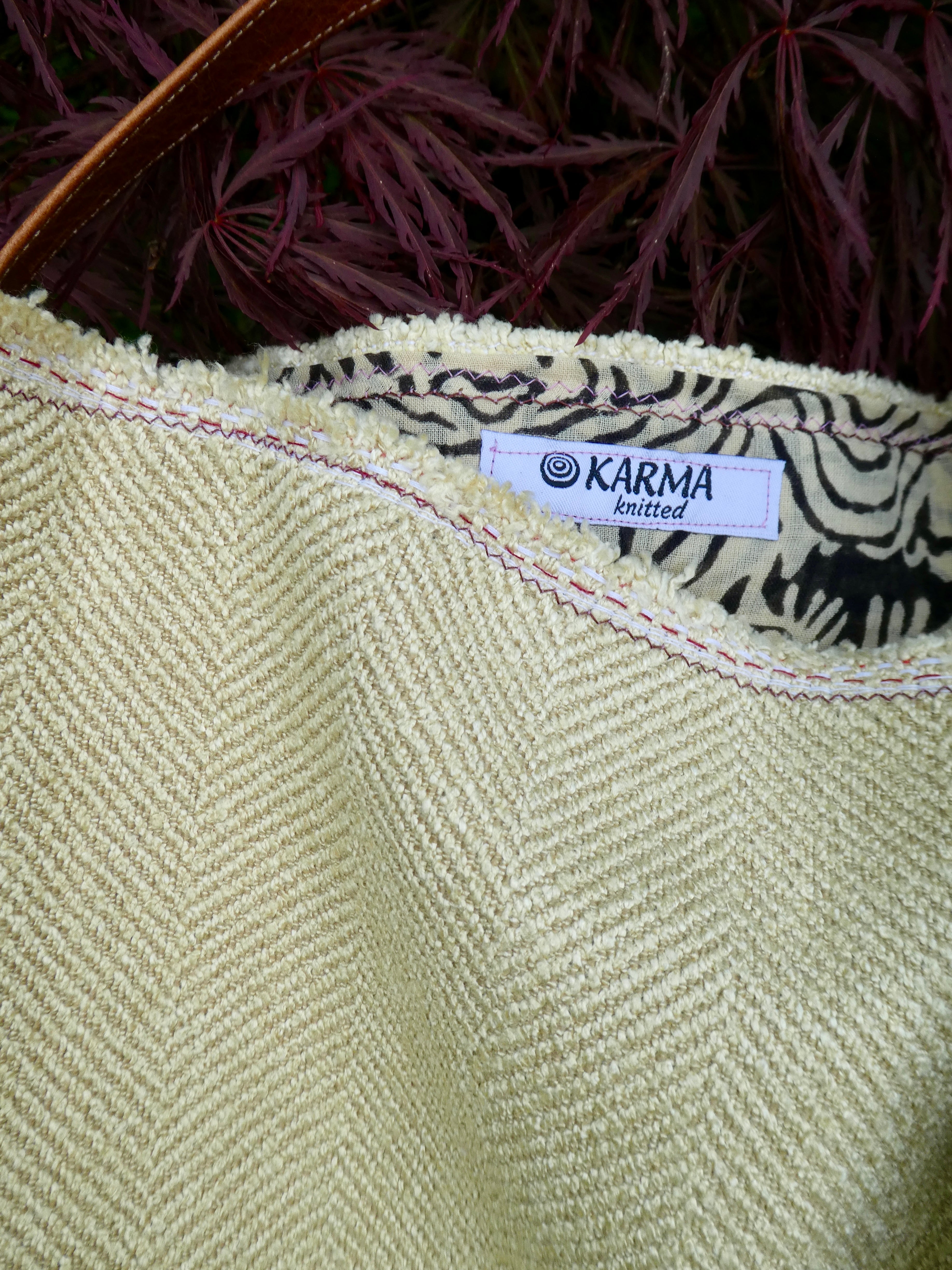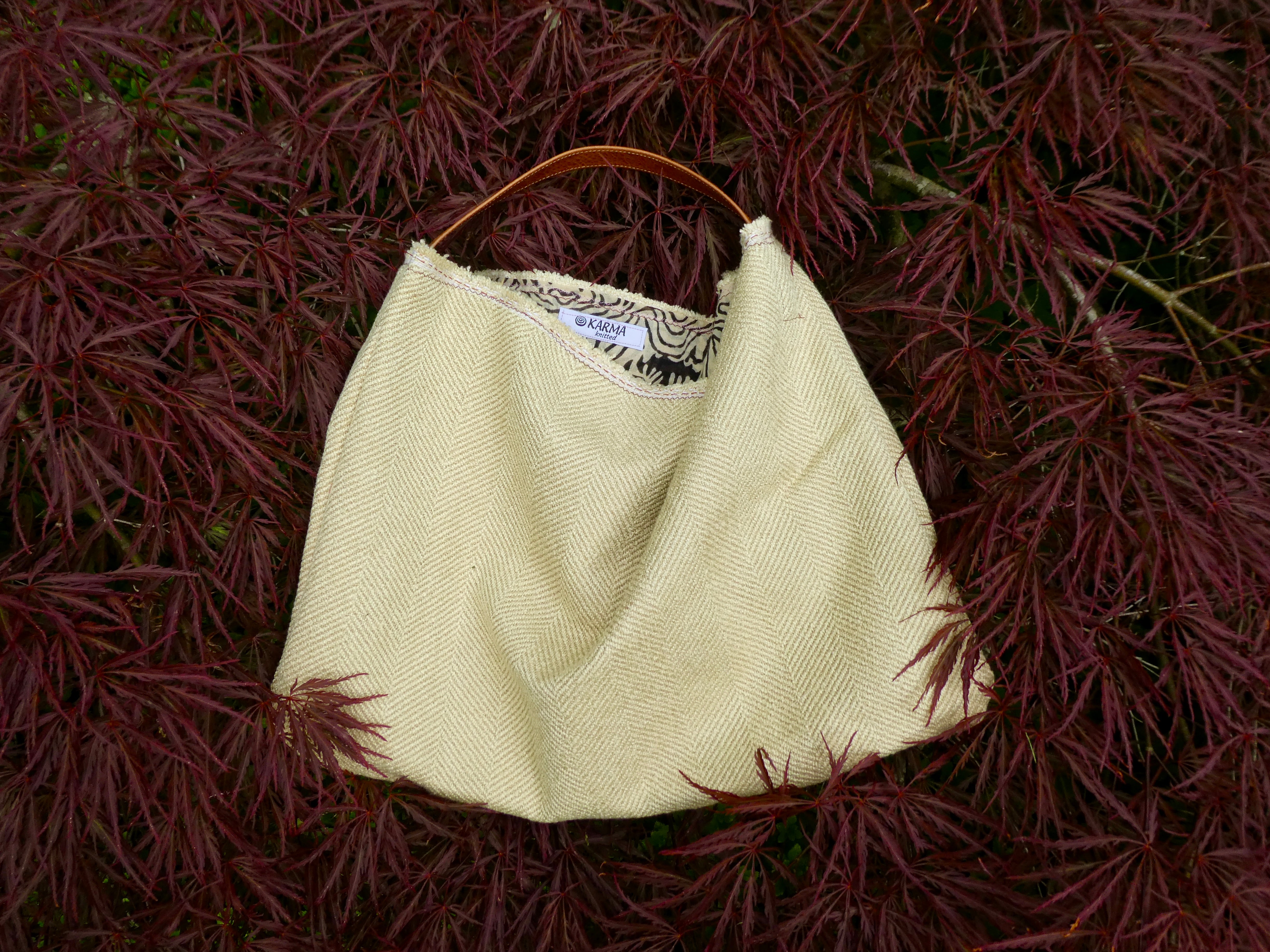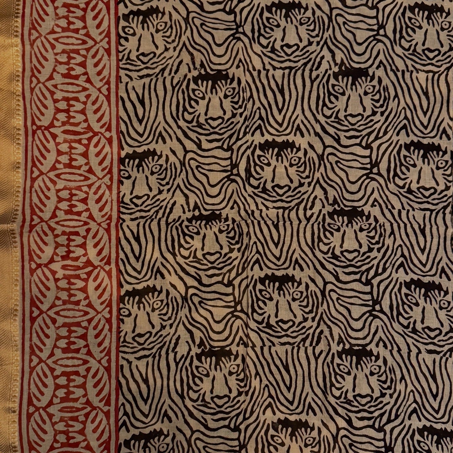The lining—little tigers on soft cotton— a block printed from India, a fabric I couldn’t stop thinking about. I imagined a clasp, but the material felt too tender, like it was meant to stay open, light, and free